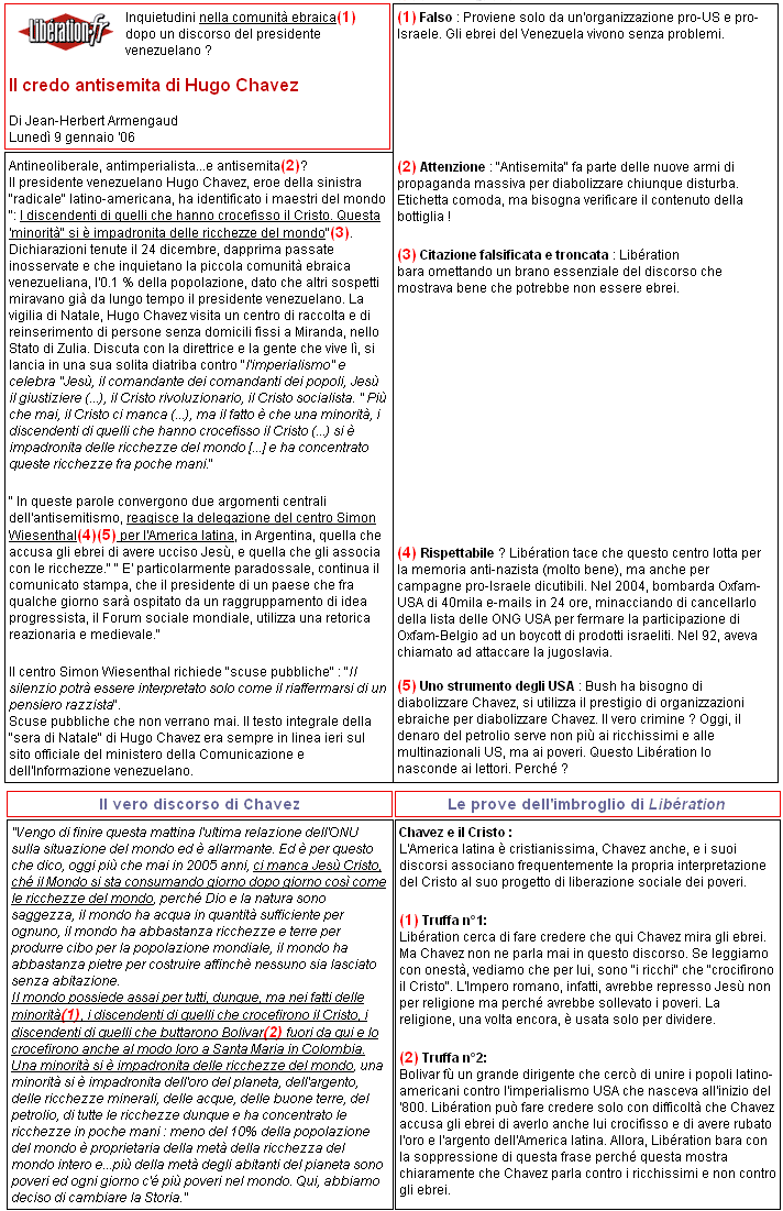 "Chavez antisemita": bugia mediatica prodotta da Liberation,