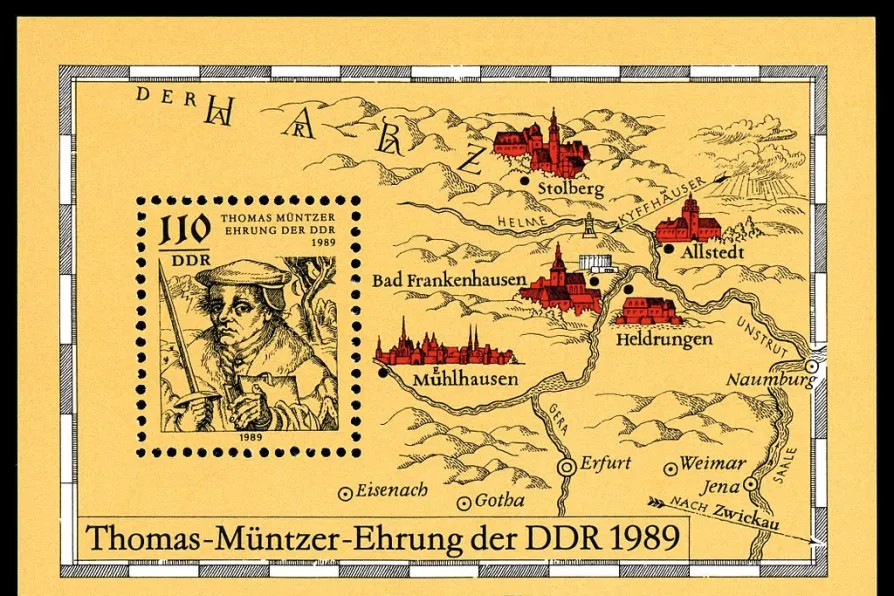 Un francobollo dedicato a Thomas Muntzer, emesso dalla DDR nel 1989. Foto: dominio pubblico