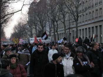 Sabato tre gennaio a Parigi, manifestazione per Gaza sotto bombardamento israeliano. Da Place de la Repubblique agli Champs-Elysées, passando per la zona dei grandi magazzini Lafayette e Primptemps. Zona ricca, centrale, attorno all’Opéra. Ho incrociato ed assistito alla manifestazione, al suo sfilare. Impressionante. Le cifre hanno detto circa 20/25 mila manifestanti. A me sembravano moti di più. Primo dato la quantità. Ma Parigi è una capitale del mondo ed ha nelle sue banlieus una massa impressionante di uomini, donne e bambini, che provengono, loro od i loro genitori o nonni, dai paesi islamici. Paese colonialista. Sul serio. Tento alcune annotazioni sociologiche e politiche. Un elenco, tutto da discutere: