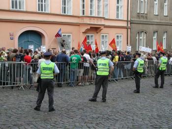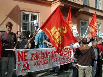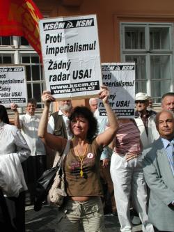 Ecco alcune immagini scattate durante la manifestazione del 4 giugno 2007, contro George Bush in visita a Praga, nella Repubblica Ceca. Il presidio davanti l'ambasciata USA è stato organizzato dall'Unione della Gioventù Comunista (KSM) e dalla sezione di Praga del Partito Comunista di Boemia e Moravia (KSCM). La manifestazione si inserisce nella più ampia campagna comunista contro la costruzione di un base militare USA nel territorio della Repubblica Ceca.